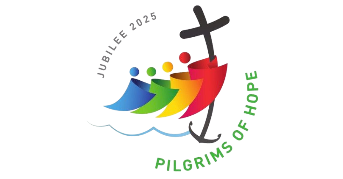 Non si trascuri il fatto che l’immagine mostra quanto il cammino del Pellegrino non sia un fatto individuale, ma comunitario con l’impronta di un dinamismo crescente che tende sempre più verso la Croce. La Croce non ѐ affatto statica, ma anch’essa dinamica, si curve verso l’umanità come per andarle incontro e non lasciarla sola, ma offrendo la certezza della presenza e la sicurezza della speranza. È ben visibile, infine, con il colore verde, il Motto del Giubileo 2025, Peregrinantes in Spem.
